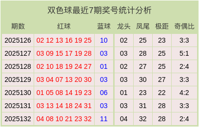 上期双色球的开奖号码中,首尾组合为04+32,极距为28,奇偶比为2:4。