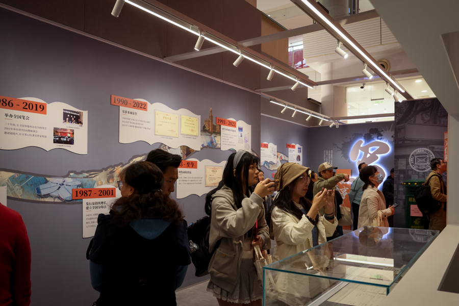 嘉宾在《上海故事》创刊四十周年回顾展上打卡留念。