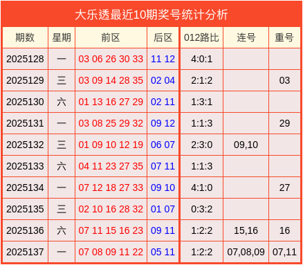 上期回顾:大乐透2025137期开出奖号:前区07、08、09、11、22,后区05、11。